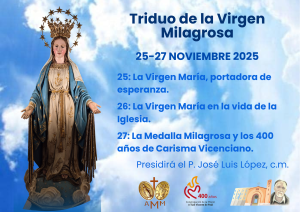 Triduo de la Milagrosa: 25-27 de noviembre de 2025 Durante los días 25, 26 y 27