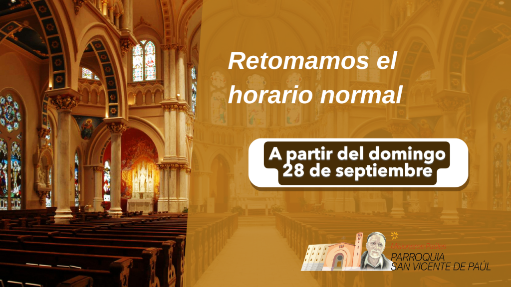 Retomamos el Horario de siempre Deja un comentario / Horarios, Noticias / Por San Vicente de Paúl A partir del domingo 28 de septiembre, celebrada ya la Solemnidad de San Vicente de Paúl, retomamos el horario de siempre.