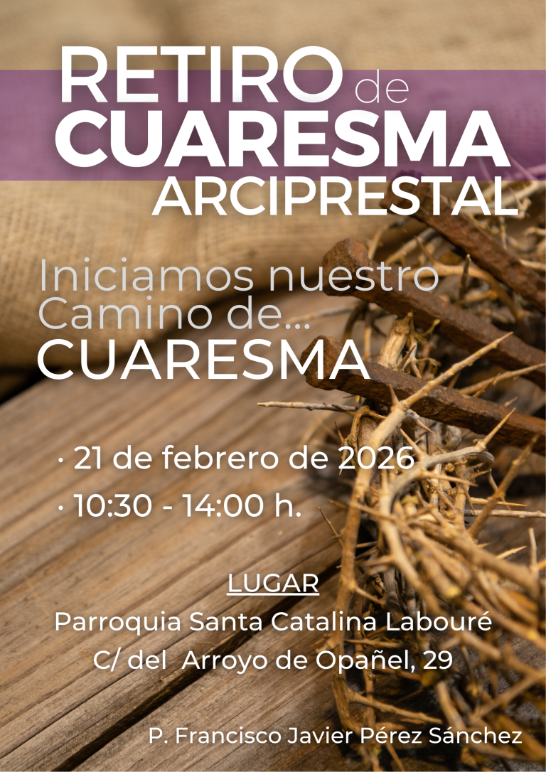 El sábado 21 de febrero, de 10 a 13:30 h., tendremos el Retiro Cuaresmal Arciprestal. Al inicio de esta cuaresma, se nos brinda la posibilidad